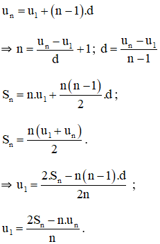 Trong các bài toán về cấp số cộng, ta thường gặp năm đại lượng \(u_1, n, d, u_n, S_n\).