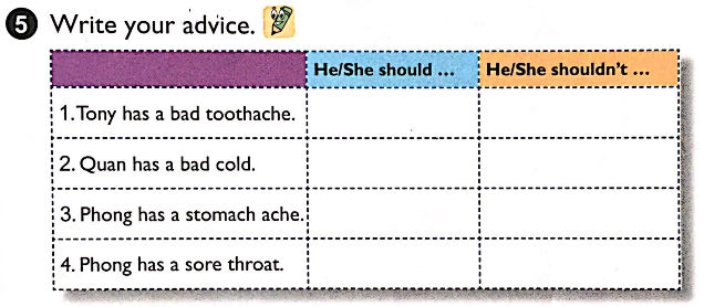 - nghe và gạch dưới những đoạn văn về những vấn đề phổ biến về sức khỏe và đưa ra lời khuyên.