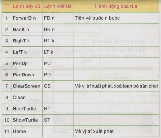 Các lệnh em đã biết
