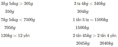 3hg 5dag … 305g 3 tạ 4kg … 340kg