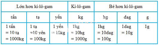 Dựa vào bảng đơn vị đo khối lượng: