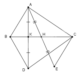 Bài 7 (2,0 điểm): Cho tam giác \(ABC\)có \(3\) góc nhọn. Kẻ \(AK\) vuông góc với \(BC\)(\(K\) thuộc \(BC\)). Trên tia đối của tia \(KA\) lấy điểm \(D\) sao cho \(KD = KA\).